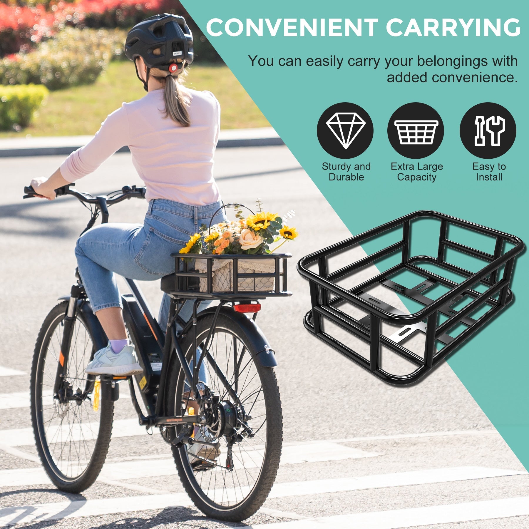 Che tu stia andando al lavoro, facendo commissioni o partendo per una breve gita, questo cestino può trasportare facilmente borse, verdura, caschi e altro ancora, liberando le mani e aumentando la comodità nei tuoi spostamenti.