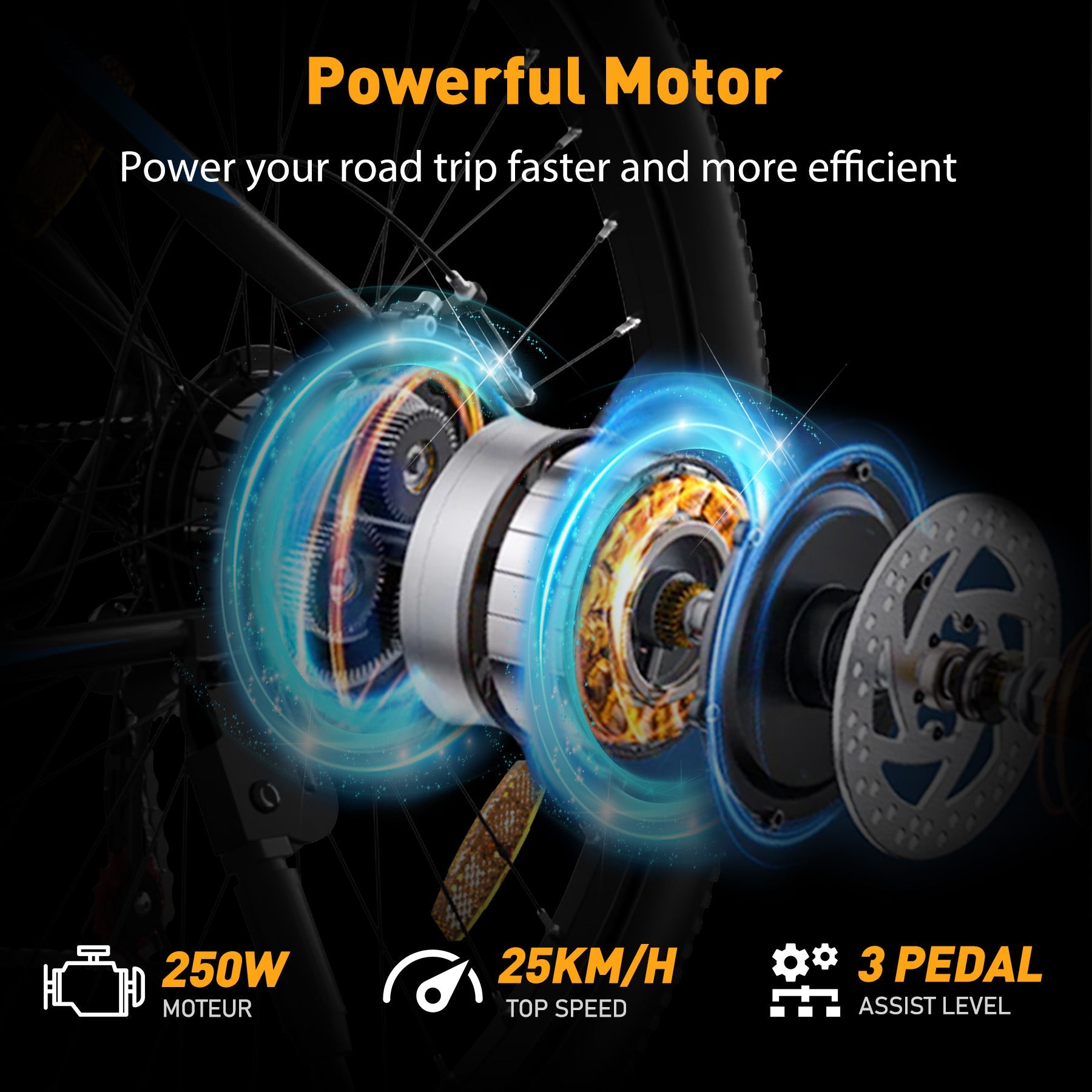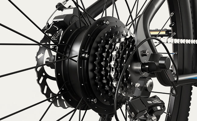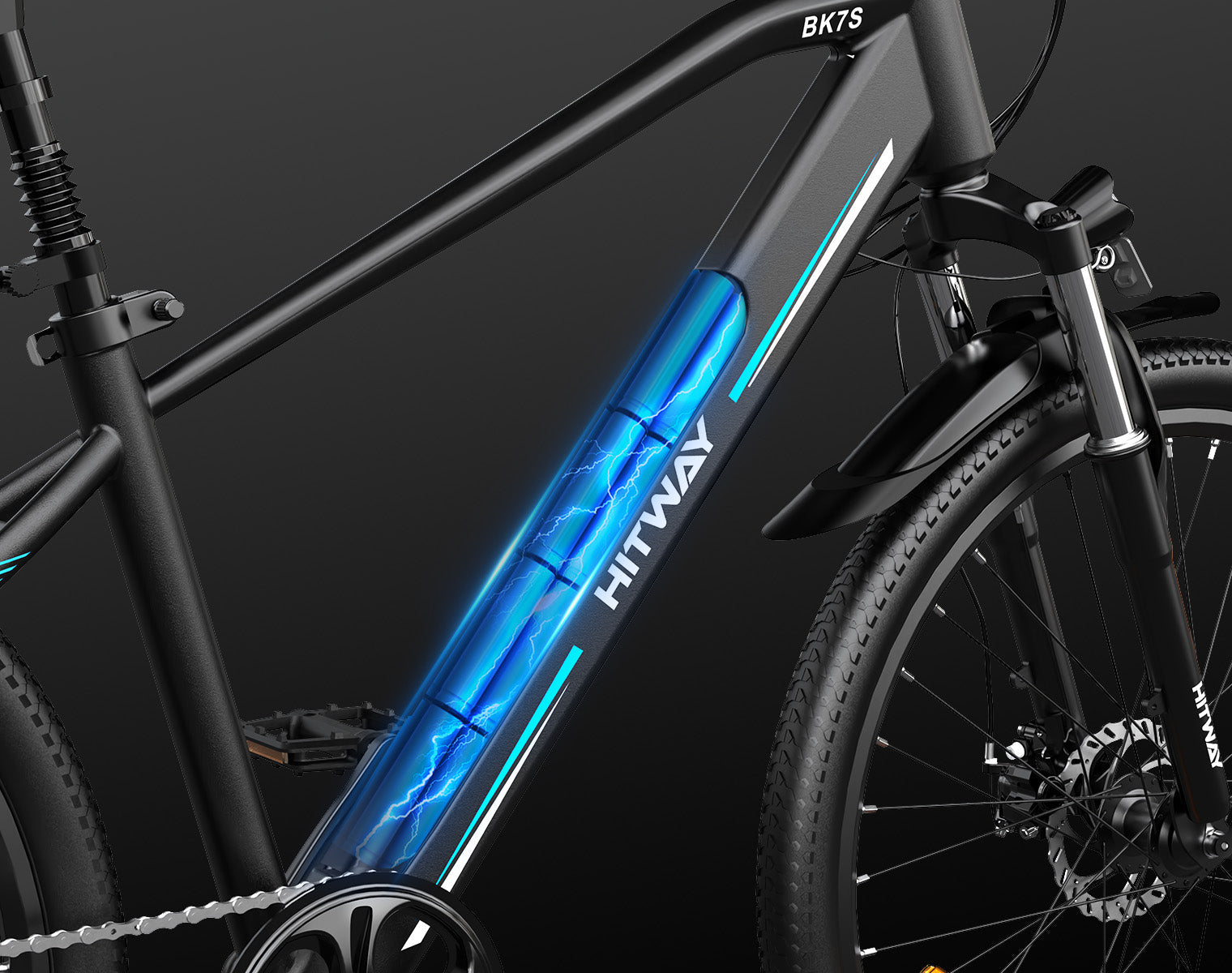La HITWAY BK7S è dotata di una batteria rimovibile da 36V 12Ah perfettamente integrata nel telaio in lega di alluminio. Questa integrazione conferisce alla bici un profilo pulito, moderno e aerodinamico. Potrai goderti lunghe percorrenze senza sacrificare lo stile o il peso, poiché il design della batteria mantiene l’equilibrio e la leggerezza della bici.