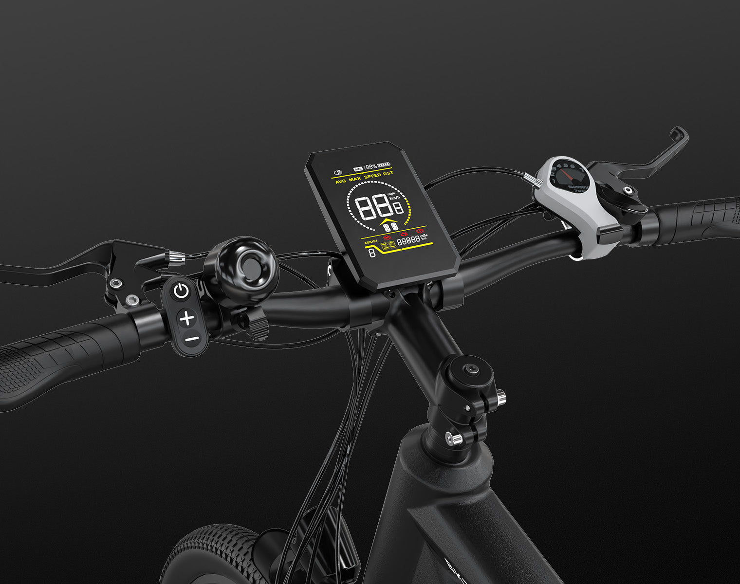 Lo schermo LCD multifunzione fornisce dati in tempo reale su batteria, velocità e distanza percorsa. Questo display chiaro e facile da leggere ti consente di concentrarti sulla strada mantenendo il controllo delle informazioni essenziali. Puoi monitorare facilmente le prestazioni della tua e-bike e pianificare i tuoi viaggi con precisione.